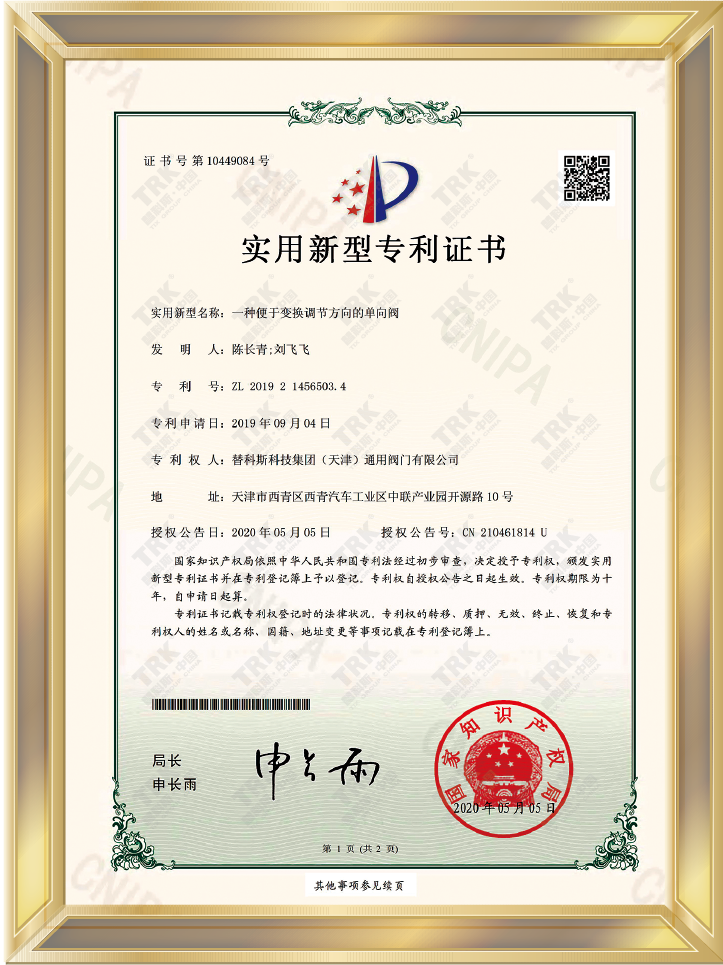 特種設備型式試驗證書-止回閥