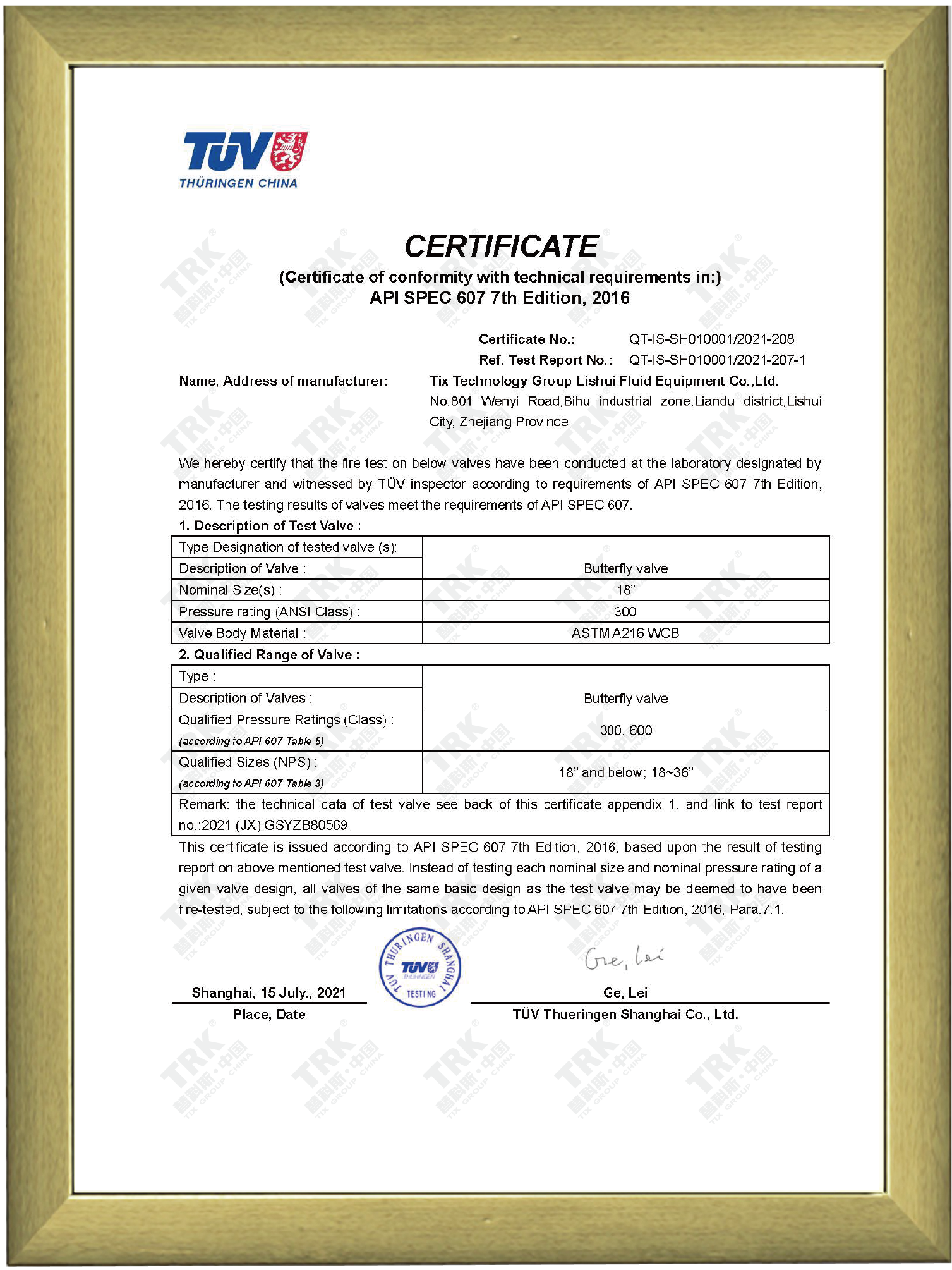 特種設備型式試驗證書-蝶閥