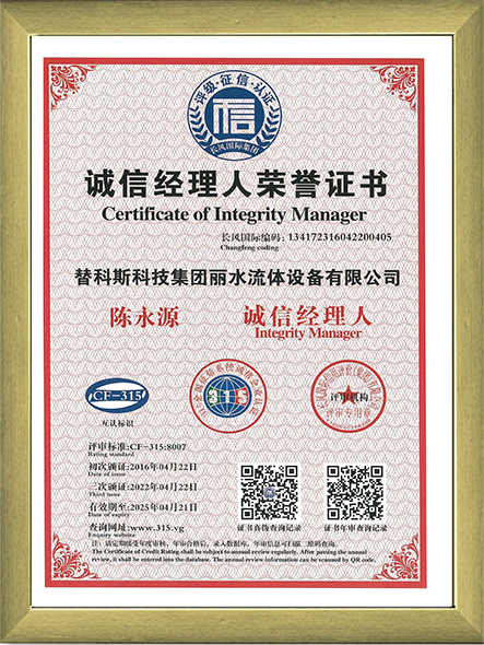 誠信企業家榮譽證書