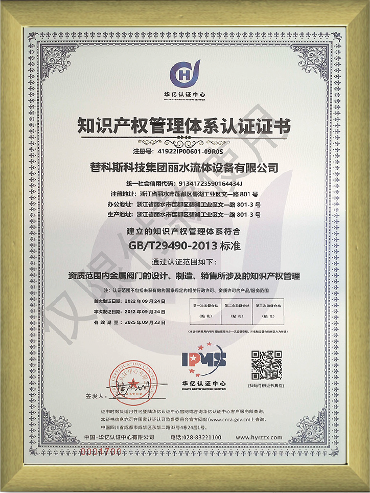 知識產權管理體系認證證書