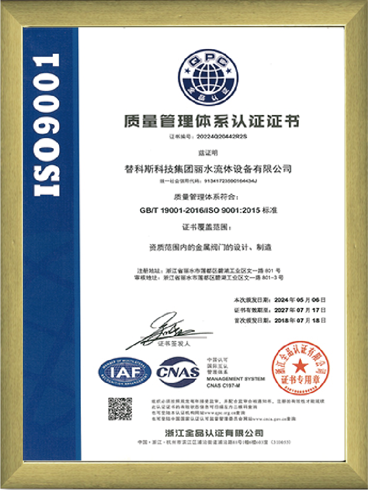 ISO9001國際質量體系認證證書